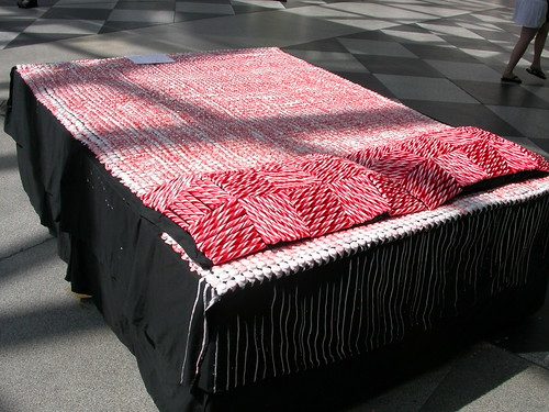 Other artists had worse problems. Jill Larson, who covered a bed with peppermint candies saw her work literally melt down in the heat. Another artist who had unframed photographs affixed to the windows around a doorway saw her works completely warped by the heat and humidity. She had to tear the pieces down and put new ones up (the new ones, too, were warped when we visited).