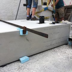 Paul Santoleri strikes a pose atop his new installation at the Thomas Eakins House