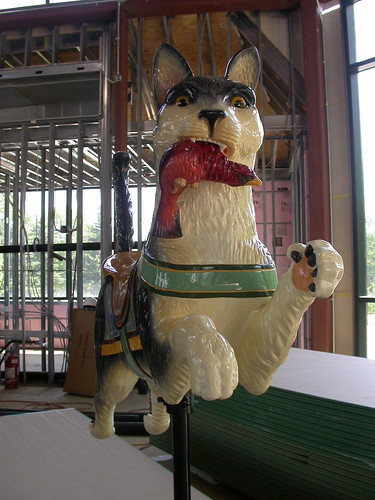 “Some of the best carousels were made in Philadelphia on Germantown Avenue,” Museum President and CEO Nancy Kolb said. The Dentzel Carousel Company’s “Philadelphia style” carousel is a 3-abreast carousel with a stationary outside row of characters. There are 52 carved animals and two chariots; 16 stationary horses; 18 beveled mirrors on the outside; 24 horses, four rabbits, four cats, two pigs and two goats. Right now, the merry-go-round is being restored in Ohio.