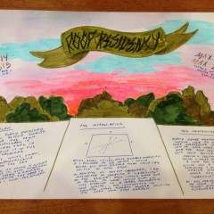 M. I like to abuse them. In that way it’s also a kind of a mark. If I spilled something on it, I work that spilled moment into them. Sometimes I dunk them in water so the color bleeds together. I’m not interested in aging it, but I am kind of interested in making it look like a Pirate’s map.