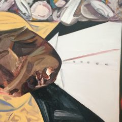 Dana Schutz’s Man Eating his Chest comes right out of the Medieval chamber of horrors. But the painting couldn’t have been more contemporary in its approach–falling into abstraction when you least expect it. Her works have the heaviness of Alice Neel’s grounded figures and the brutal brush strokes and anti-militarist nature of Georg Baselitz. Goya’s Saturn Eating his Children is also pertinent. This is a picture of the world eating itself. Modest in size the piece packs a wallop.