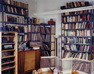 I’m someone who always looks at the walls and bookshelves of people who invite me to their homes, so of course I enjoyed the leisurely perusal of Davey’s interiors and the stuff of her everyday life. It’s the home of an urban sophisticate with an interest in the arts: imported coffee, a poster for a Jacques Tati film, post-cards of a Lucian Freud painting and a self-portrait by Ilse Bing, lots of defunct stereo equipment and old lps, endless cheap metal shelving with books piled one upon another and volumes of Chekhov, Cheever, Rilke and Sartre.
