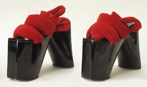 A New York Times article “Japanese Women: From ‘Geta’ to Platform Shoes” reports on the incidental trend of platform shoes in 1974 Japan: “…that balancing skill is now for sandals up to five inches thick and is as essential here to the popular mini-length skirts as the geta are to the kimono.”