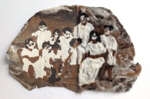El Anatsui–No paint–he’s using foil from liquor bottles, connected with copper rings, to create a giant chain mail cloth that will look different every time it’s shown. But he is using painting conventions. He will have a major retrospective soon at the Museum Art and Design.