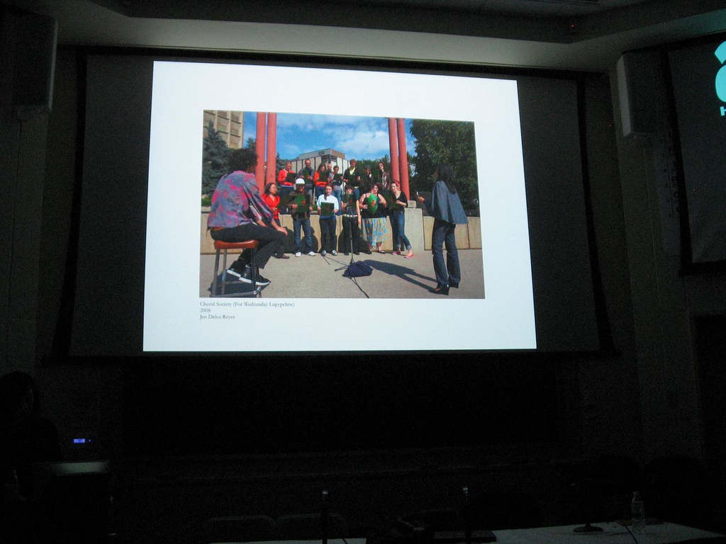 The fourth speaker and artist in mini-residence, Jennifer Delos Reyes, who organizes group hug kinds of projects, also staged a mini-event at the talk. She got the audience to sing the one song that she didn’t get enough students to perform for her project: She had invited students and staff to record covers of the tracks from Fleetwood Mac’s 1977 Rumours album. The covers could be anything from a capella performances to dj mixes to rap. The cover album was scheduled for release last week, and Delos Reyes was hoping the enthusiasm of the campus community, in creating the cover album, would somehow overcome the personal drama that plagued the band at the time of the original release.