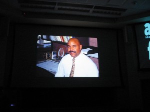 My own take: the piece more or less recapitulates the final journey of Till from his Uncle Moses Wright’s house to the river where Bryant and Milam dump Till’s body–it was quite literally a journey as we moved through many buildings and hallways. It was a journey through a crime scene, but one where the crime is still going on and on; Emmett Till dies over and over, and his ghost haunts victims and perpetrators alike: Till is a wound, historical and personal, that remains open.