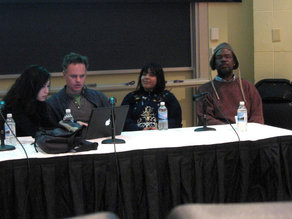 At a talk before all the final happenings happened, the four invited artists spoke about their work–and a couple of them turned even their talks into happenings.