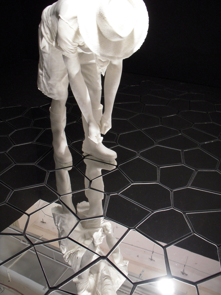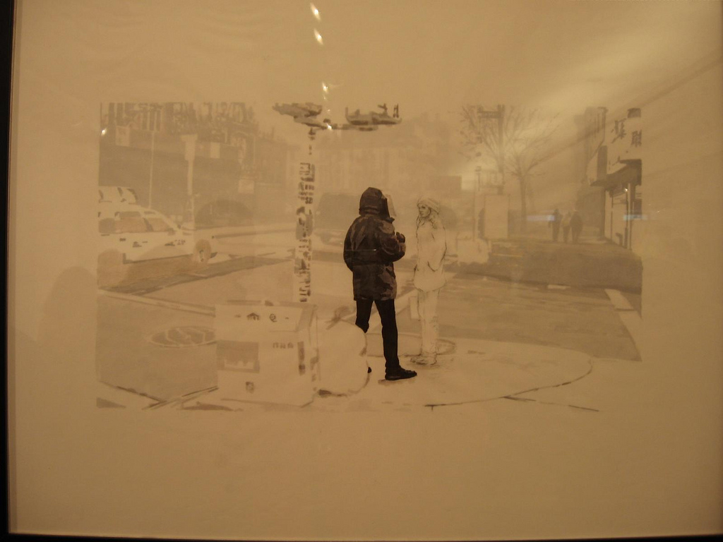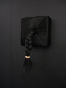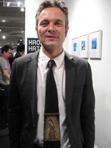 Across from this wonderful piece was the gawker’s delight of the Armory–Fernando Mastrangelo‘s “Felix” at Rhys/Mendes Gallery, an academic sculpture of a coca farmer made from cocaine and resting on a floor of mirrors. Been there, done that. A couple of artists working the drug/anti-drug message and doing it more successfully are Stuart Netsky our homie and of course Fred Tomaselli.