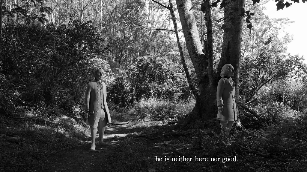 In the video, the philosophers take a walk in the woods, talk of God, and encounter death. The piece suggests that man may write philosophy about God’s existence and nature’s goodness but that truth lies elsewhere: Nature is beautiful but ultimately unknowable and God has better things to do than take care two philosophers in the woods.
