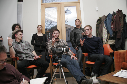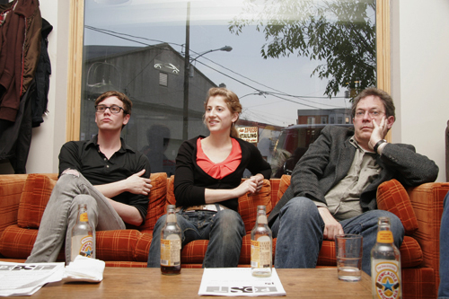 The panel was one of a series of discussions, Junto, organized by South Philly design firm P’unk Avenue. Our moderator was P’unk’s Rick Banister, who deftly held it down and keep it directed, until ultimately even he was overwhelmed by a groundswell of anger and frustration (oy, frustrated artists). (Here’s a link to the P’unk Avenue blog, P’unk Avenue Window, where there are several posts and comments about the event).
