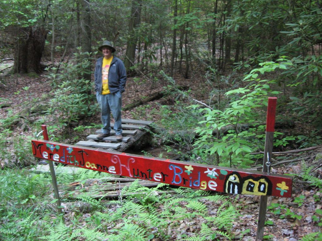 And the foot bridge over a stream is the Meredith Joanne Hunter Bridge, so named by their granddaughter, Meredith Joanne Hunter, who also painted the sign. Dennis, who used to be at Duke where he was the Director of Research Communication, named himself the DORC of Duke.