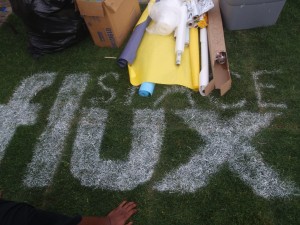 For those who chose to engage the work, the piece became a lighthearted performance between audience, participator, and the artist herself – everyone who played along had fun. The diversity of this work thrives as it goes outside of the space of the Gallery, out into the community, gets poked and prodded. As a wrap, a take-away piece is produced that becomes an addition to the artist’s collection of ironic displacements-of-the-everyday that make up the larger body of her work.