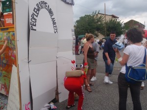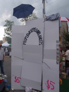 This installation was clearly more fun than theoretical, but certain elements of the ideas on display showed the true diversity of the work being produced by the members of Little Berlin. For example, the ‘People Wrapped in Blankets’ photobooth was a rather cheeky attempt by one of the artists in the group, my good friend Beth Heinly, to engage passers-by in the satirical handmade aesthetic of her work.