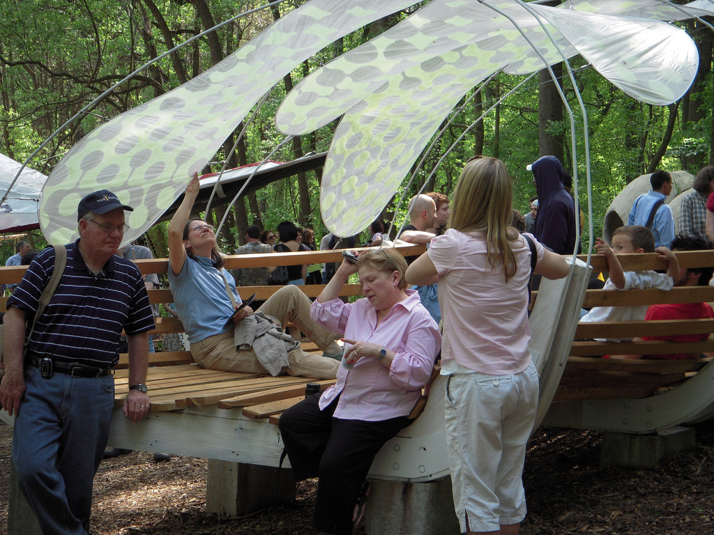 Schuylkill Center for Environmental Education and Morris Arboretum each have new art in their woodsy grounds, and this summer, natural materials guy Patrick Dougherty’s new piece, a fanciful twig hut called “Summer Palace,” debuts at Morris and will rest in place til it biodegrades. In like vein, the Schuylkill Center debuts 6 (also fanciful) sustainable-design shelters in its wooded 350 acres. It’s art you can sleep in! Make a reservation to camp out in one of the sturdy little shelters by calling the center. Human imagination makes art like this hold its own amidst the beauty of nature.