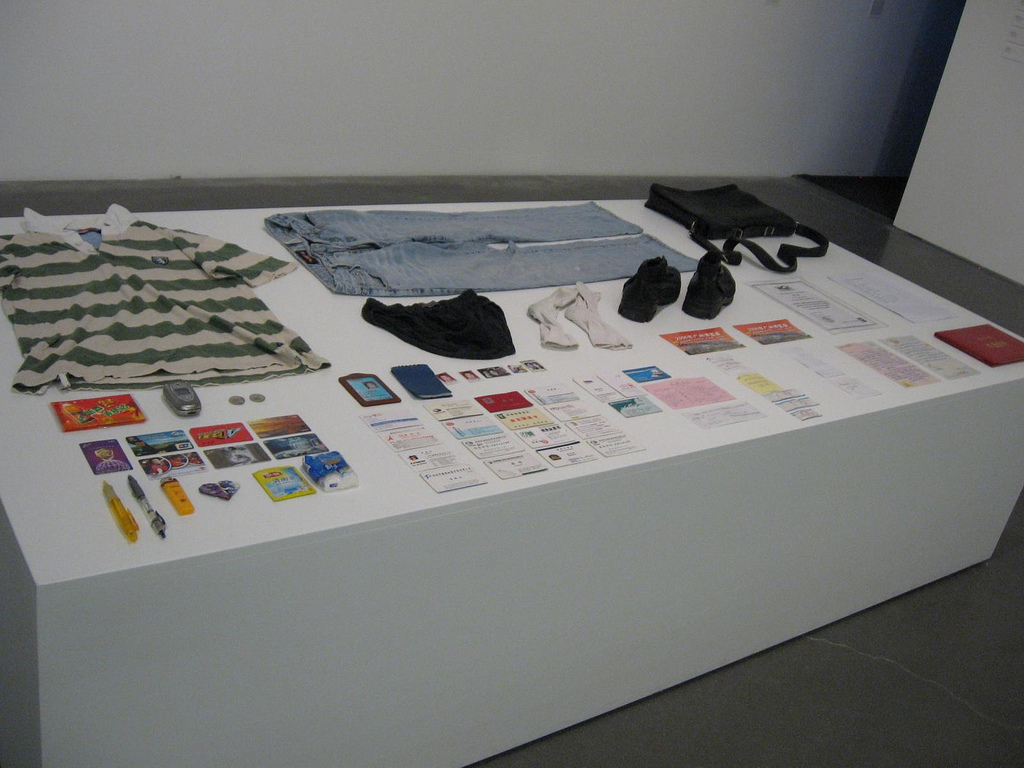 Also from China, Liu Chuang, in his installation Buying Everything on You, buys all the clothes and possessions worn by a person and arrays each person’s things in a museum-like display on plinths in the gallery. I was particularly struck by the number of identity cards in the Huangwei array, and by the makeup in Liu Zhe’s possessions, which also included a sanitary pad! These were poignant and vulnerable portraits of people. The layout inverts the possessions from trophies to an impoverished collection of just stuff.