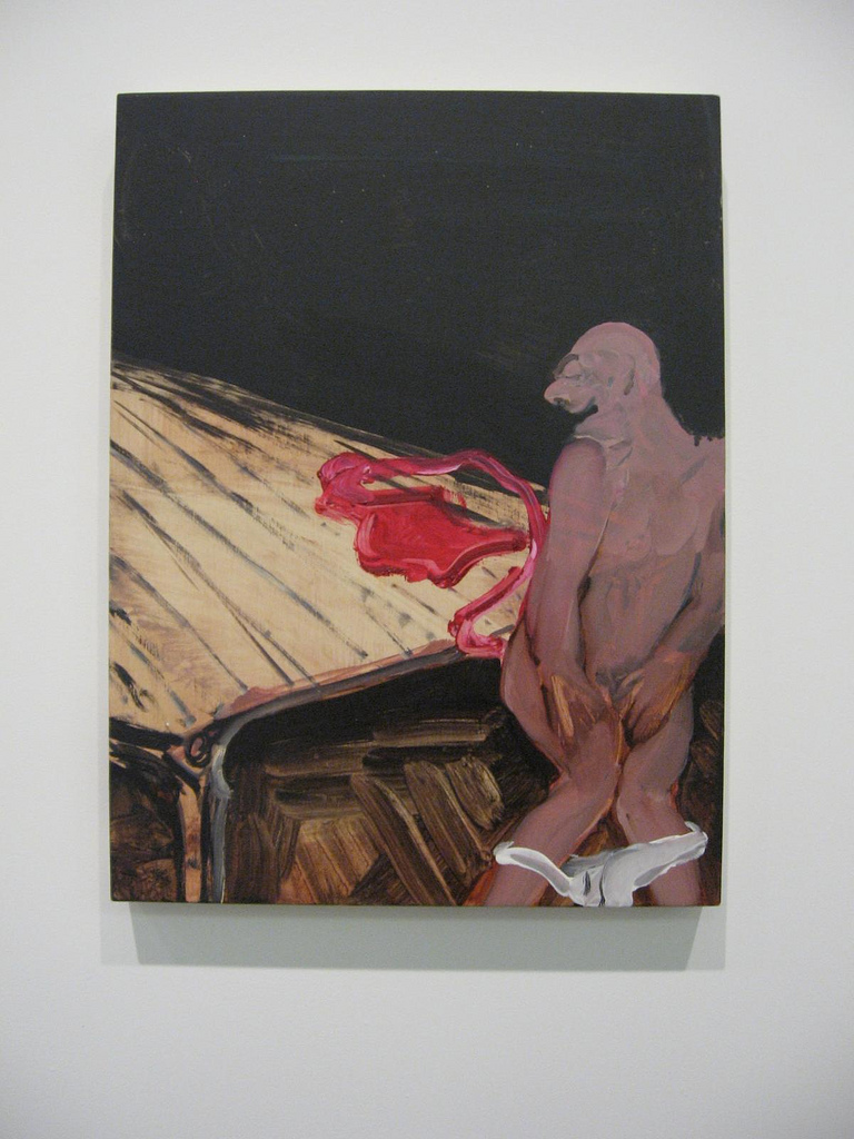 Tala Madani’s oils of men in somewhat demeaning situations are anti-heroic and anti-macho, and suggest a culture that has not yet succumbed to big box stores. In Madani’s work the oppressors have a human face, and it’s male, and painting is the antidote. How refreshing!