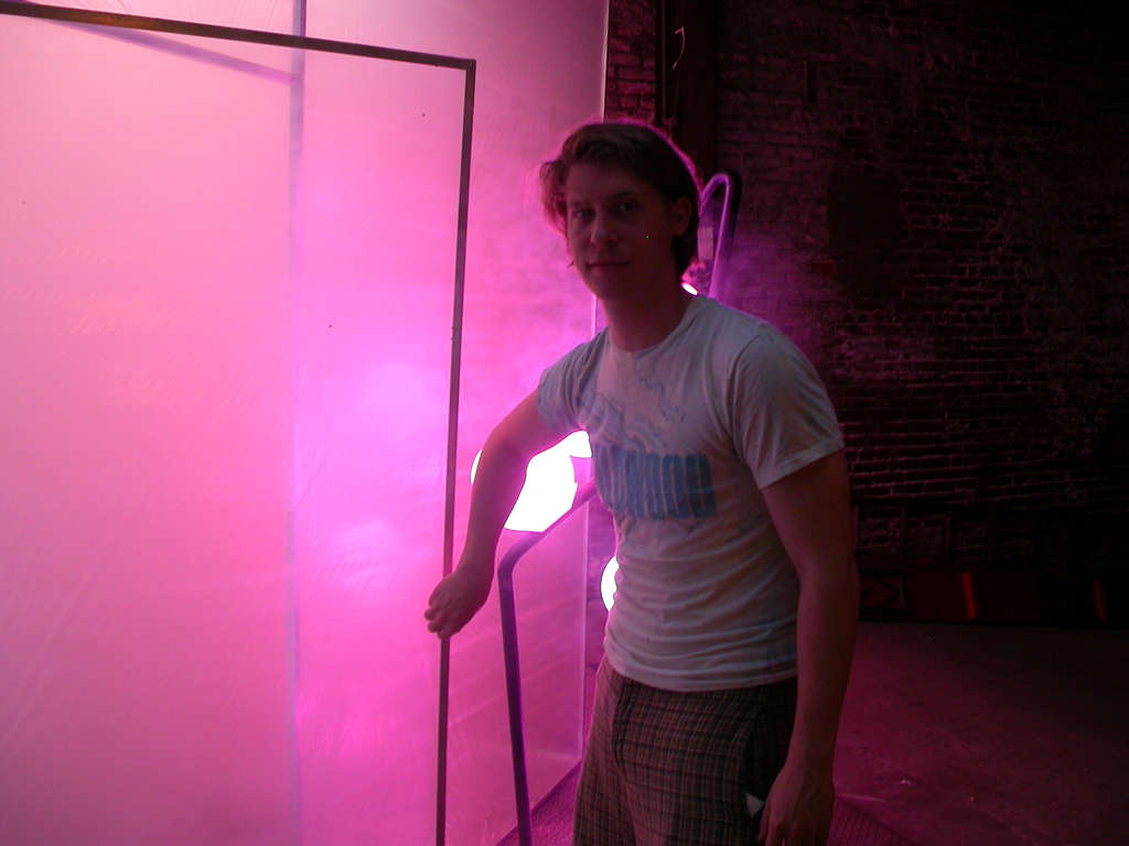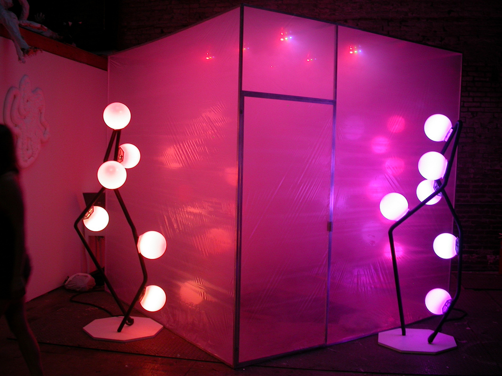 Ben Phelan‘s fog box/dance chamber with its changing colored lights and dense atmosphere reminded me of the Olafur Eliasson Your Colour Memory piece at Arcadia a few years back. Phelan told me he was working lights (and smoke and mirrors) for the Brooklyn band Yeasayer and had just come back from being on the road with them. The band will be playing at New York Pier 54 August 13 and Phelan will be there doing his thing.
