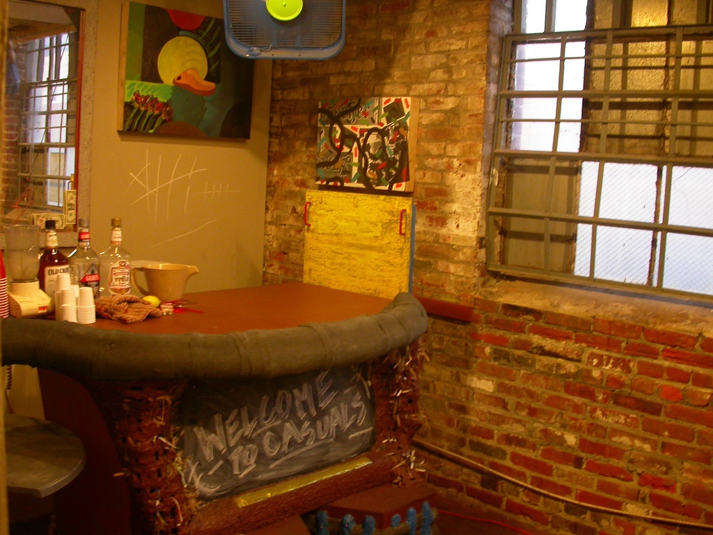 Phil Cote was there and I talked with him briefly. The Bobo band member collaborated on the Speakeasy “Casuals” with Jonathan Santoro. Cote told me that the piece the Bobos had put in the Blood Drive show at Zack Feuer had been removed from the show. The reason was a little unclear. The Bobo piece, a digital collage, is an obsessive, conspiracy-theory rumination about Youngbloods taking over the world. It’s very trippy and paranoid–and you have to take it as a parody and funny, so I’m not sure what caused the gallery to take it down.