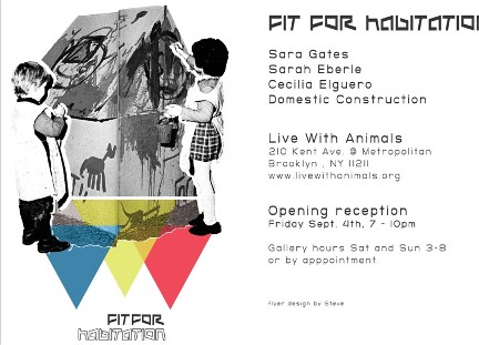Sarah Eberle, who is half of Rebekah Templeton Gallery, is showing some of her own art in Brooklyn at Live with Animals. The exhibit, Fit for Habitation, is a collaboration by Sara Gates, Eberle, Cecilia Elguero, and Domestic Construction that hits on themes of habitation and design, to name a few ideas. The exhibit opened Sept. 4.