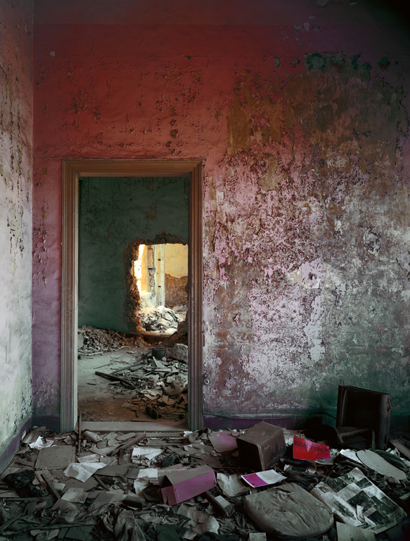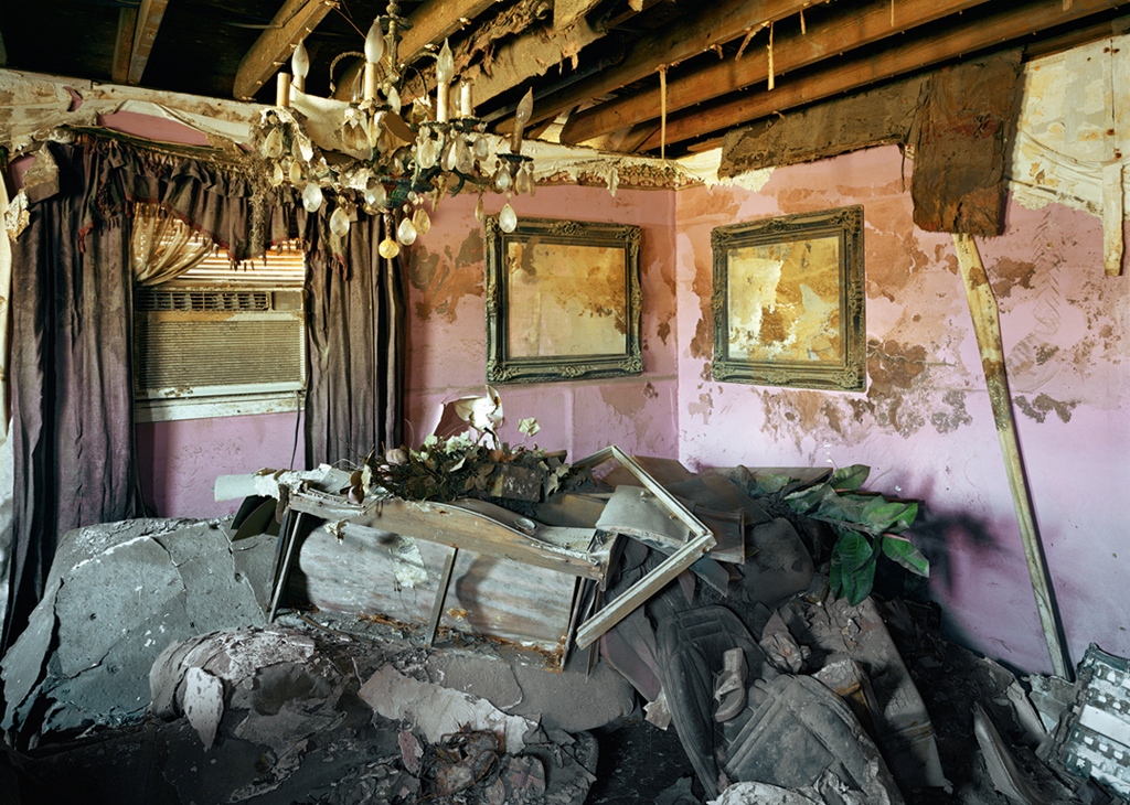 When the Montreal-born photographer confronts the domestic echoes of larger atrocities, he produces haunting images. The ravaged bullet-ridden rooms of Beirut. The toppled interior spaces of Chernobyl. The flood-strewn bedrooms of New Orleans. Confronted with all of these images, the viewer faces a humanless silence that suggests a previous human presence. The rubble and the ruins imply lives lived and comment upon the futility of the built environment in face of war and disaster, both man-made and natural.