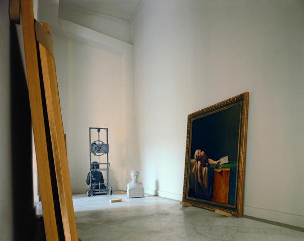 At Versailles, Polidori very shrewdly observes the work behind putting history on display. The prints show us not the opulent king’s palace of fairy tales but the modern museum under construction and in transition. As viewers, we encounter a different side of both the museum and interior space.