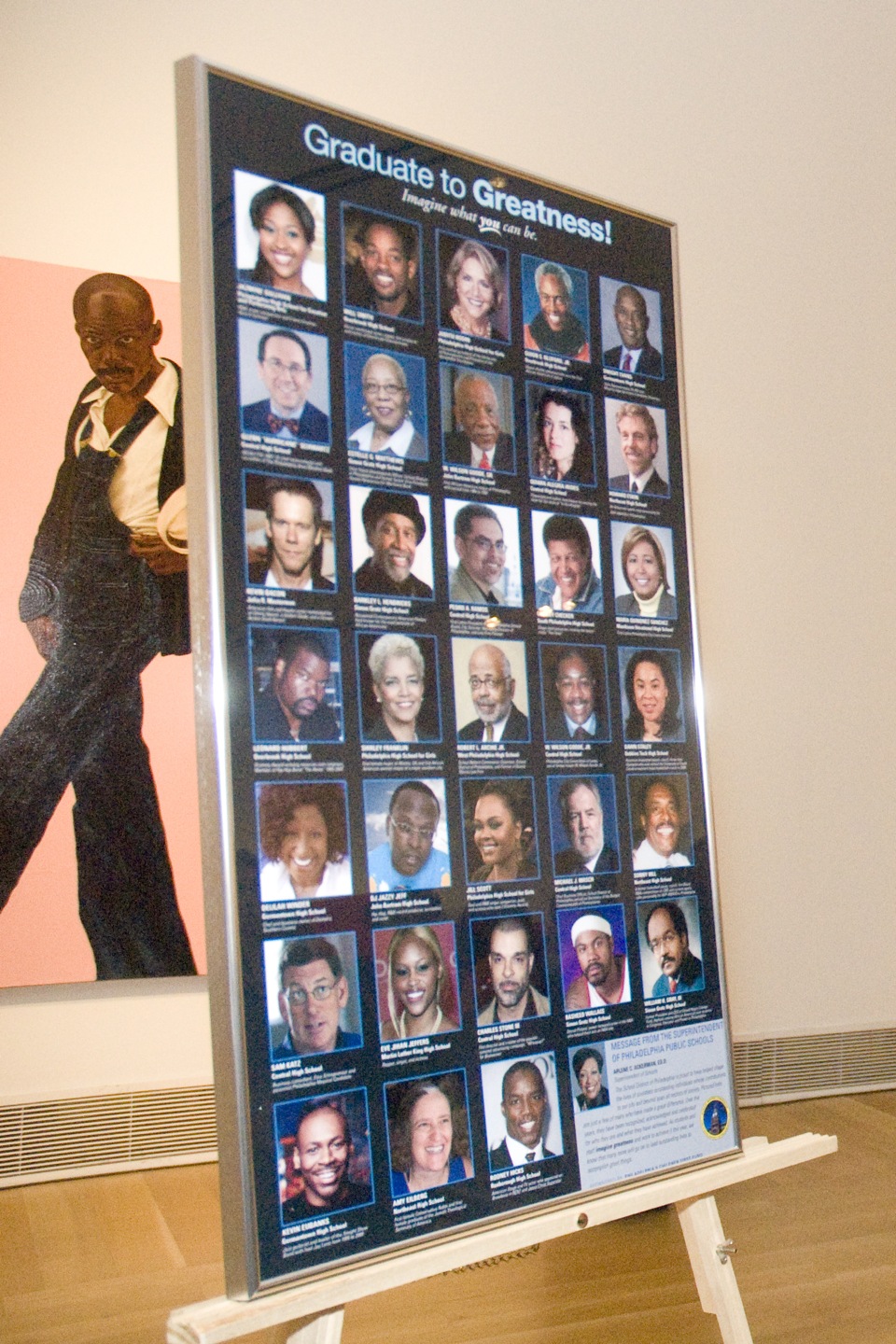 The exhibit at the artist’s alma mater, the Pennsylvania Academy of the Fine Arts, is a double homecoming. He grew up in Philadelphia and went to the public schools here. He spoke shortly after being presented a framed poster picturing a number of successful people–Hendricks is one of them–who came from Philadelphia’s public schools.