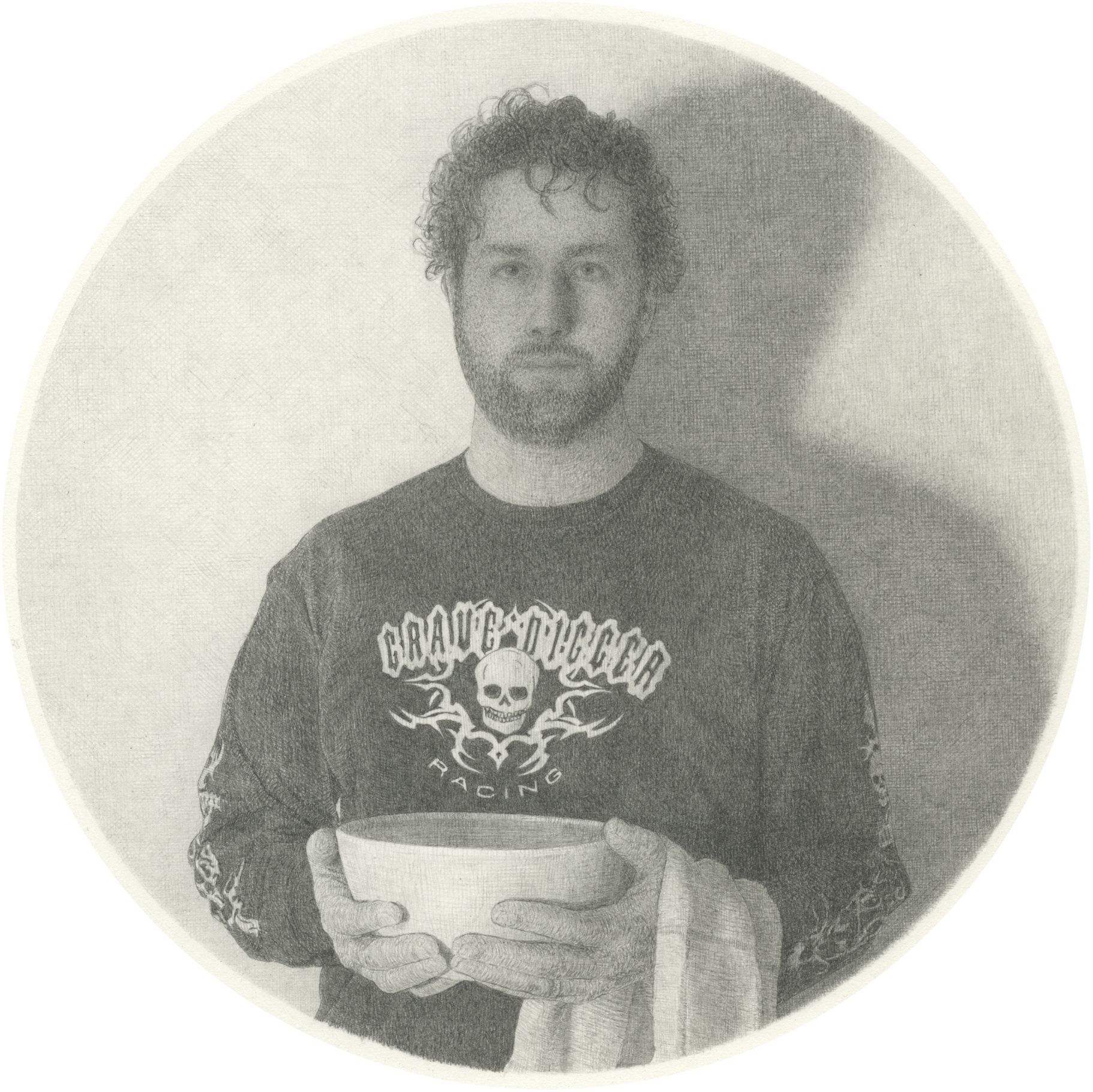 In contrast to Fisher’s figures who exist as universal soldiers of any time, Rob Matthews’ portraits are documents of this time–ordinary family and friends depicted with art historical allusions that preserve the subjects in the continuum of history, that place them in that collective memory that erases most mortals in a couple of generations. Matthews said he thinks of these as memorials, and therefore has written on the back the subjects names and particulars. The context of this show highlights all the thinking and complexity that has gone into this seemingly deadpan take on social circumstances that nearly consume individual identity.