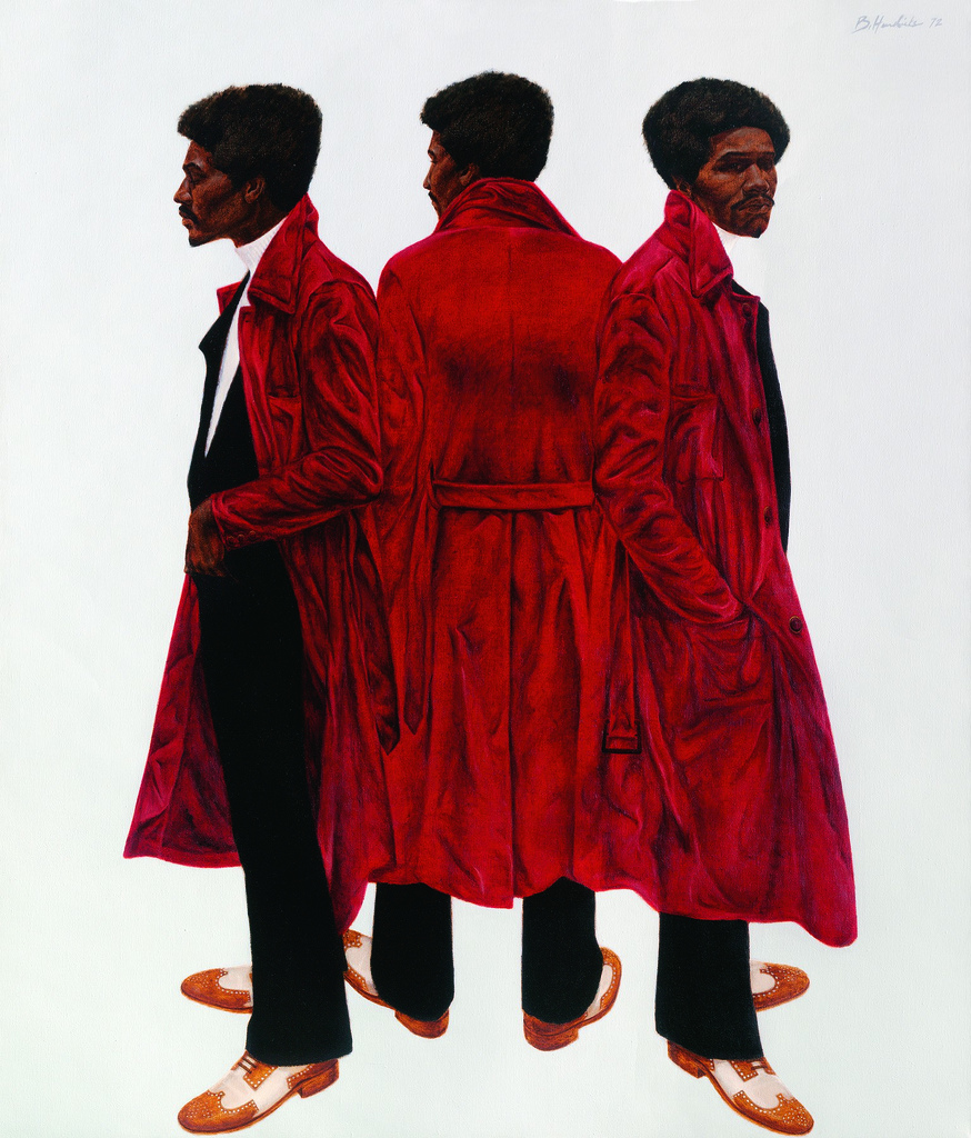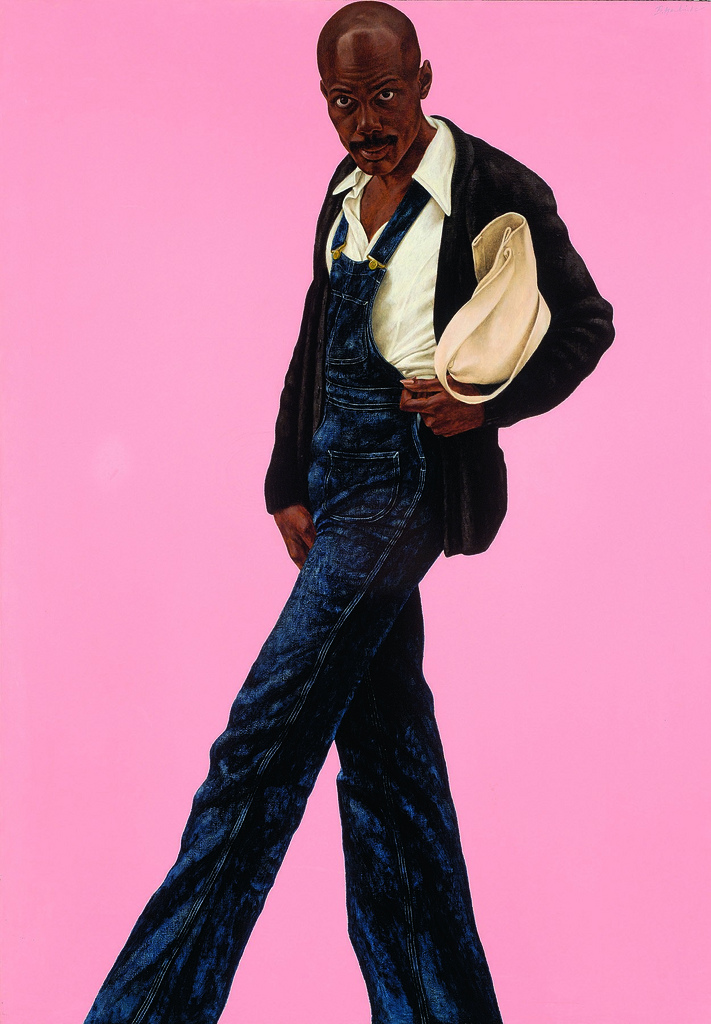 This is not art as fashion design; this is art with a political subtext. The scale is confrontational, grand and powerful at the same time that the figures are non-threatening. The iconoclasm in Icon for My Man Superman, a portrait of Bobby Seale, takes both Superman and Seale off pedestals, humanizing the cartoon, humorizing the man. Barkley Hendricks loves his subjects and loves people. It comes through loud and clear. He is legitimizing, embodying, making visible. It’s a gentle approach to a social revolution.