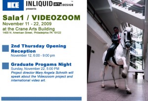 Video Zoom, showing in this country for the first time ever, is an annual project started by Mary Angela Schroth of Gallery Sala 1 in Rome in 2003. Schroth invites a curator from a different country each year to assemble a survey of that country’s video scene. Videos from seven countries, about 40 minutes to an hour for each country, are being screened. Schroth will speak tomorrow (Sunday, the 22nd at 5 p.m.)