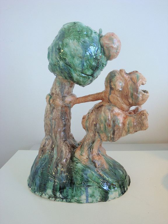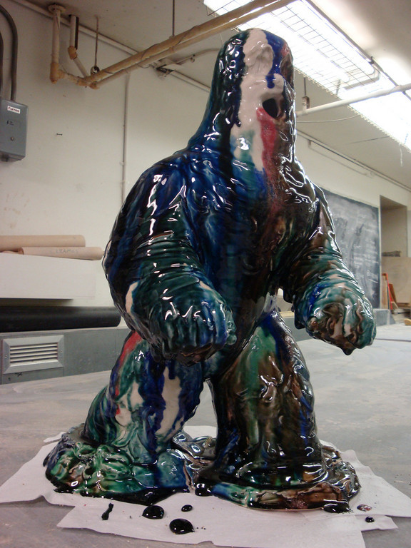 here are some images of the finished piece… unfortunately the base cracked during the final firing.. but the sculpture is still standing! and the colors came out great! take a look