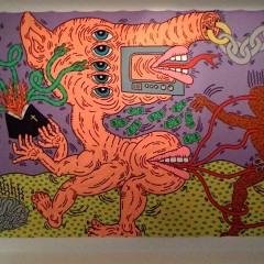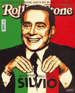 Fairey’s trying to climb back on the sweet roll since his confession about the Obama poster mishagas. His latest foray into political scandal is an Italian love-hate story. The cover of The Rolling Stone featuring the recently clobbered-with-a-small souvenir model of the Milan Cathedral, Italian Premier, Silvio Berlusconi. [See it here].