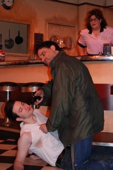 Robert Da Ponte, Russ Widdall, and Maria Panvini in When you comin back, Red Ryder?, New City Stage Company; photo by Jessica Lynn Reed