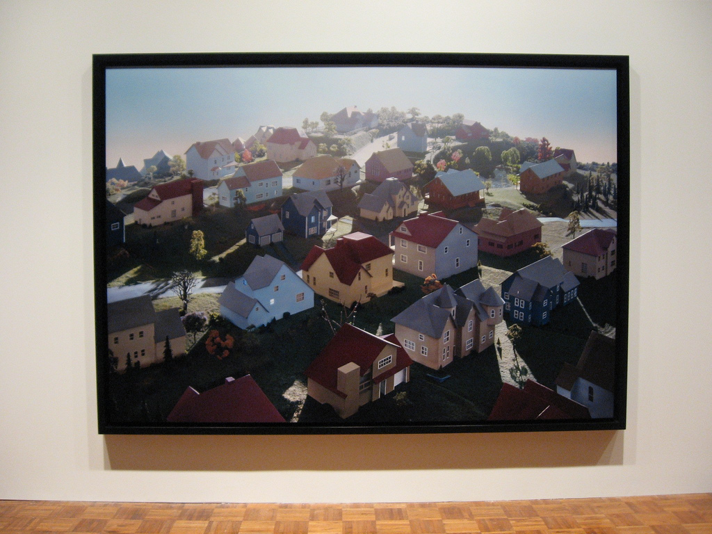 Though beauty in the show wasn’t much of a presence, it was there–James Casebere‘s enormous photos of tabletop models of suburbia are beautiful surreal landscapes of a giant social mistake (at least that’s how it looks to me), not that far from the messages of Marcopoulos, Meckseper and Vitale.