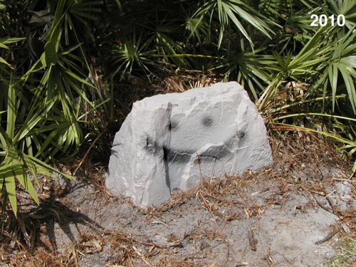 In “Pre-Career Retrospective”, there are quite a few middle fingers. In one image a group of middle fingers flip off a black cat and in another, a foot is flipping you off. A partially censored bean bag chair gives sentiment to the hilarity of censorship in general. Of course, there’s a banana. There are a number of photoshopped images, other ways of lying and appropriating art through the net. There’s no telling if an installation marked “Triangular Door” actually happened. There’s also a stone carving of Thomas Knoll’s name spelled incorrectly, twice; Thomas Knolll, Thomas Knolll. Thomas Knoll and his brother, Johnn Knoll, are the developers of Adobe Photoshop. As Brad pulls numerous references from art he does so equally in trends found while surfing the web. Shenanigans in the form of photoshopping are among them. Like for instance this giant spider(?).