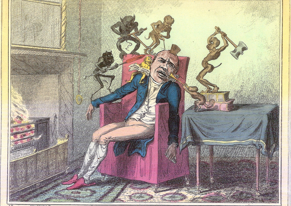 Chagoya, who was born in Mexico, educated in the US and now teaches at Stanford, was in residence at Rosenbach where he selected from among their vast holdings of Cruickshank’s works to make one piece that reflects his take on the current discussion about health care reform.