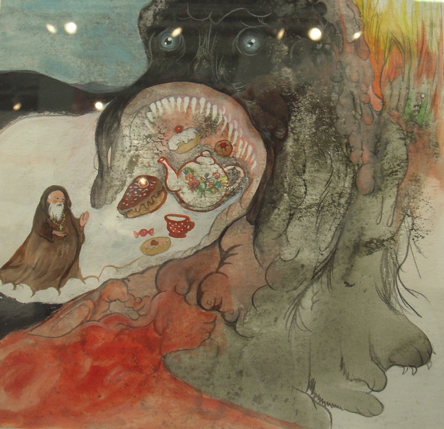 New to us, the works of Swiss-based French artist Vidya Gastaldon at art: concept, Paris are a real find. Gastaldon’s strange mixture of religion and fairy tales reminds us of Chris Davison‘s darkling illogical world with beauty, threat and lots of things happening in deepest, darkest night.