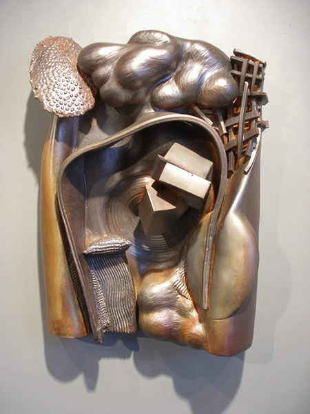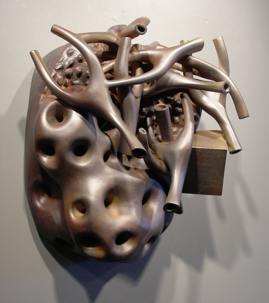 In the 1980’s architect Richard Westmacott conducted a study of African American farms and gardens, mapping out each farm in order to understand cultural relationships to building, growing, and earth. Syd Carpenter used Westmacott’s meticulous documentation as a starting point for her sculptural ceramics show A Place of Our Own at Sande Webster Gallery. These pieces couldn’t be more different from the work at Locks—while they have the medium of clay in common, all other aspects of the work vary from the tradition of brightly colored vessels. Carpenter’s sculptures are abstracted land portraits, telling a story about the daily lives lived in these particular spaces.