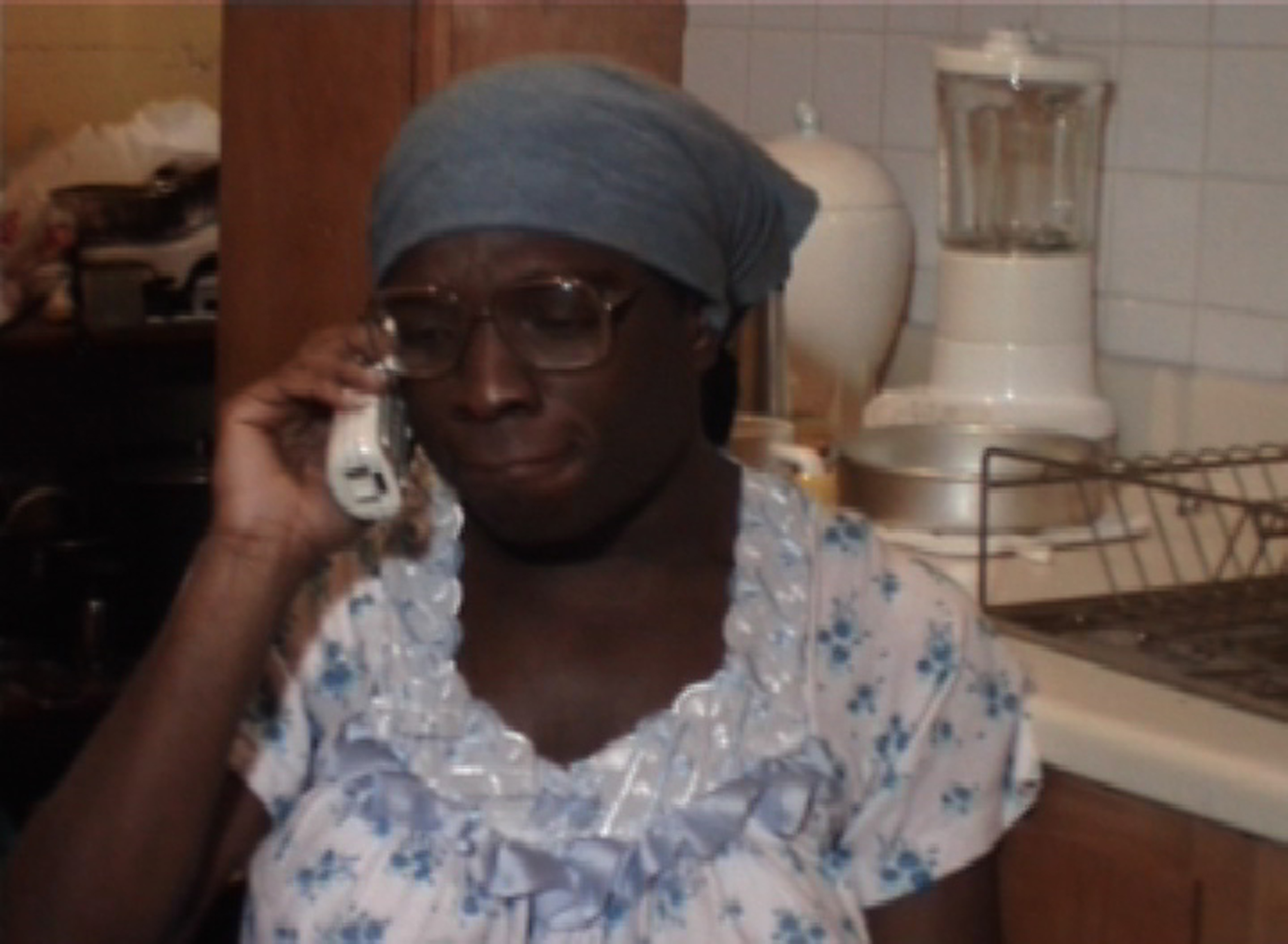 Kalup Kinzy also expresses emotional truth beneath his format of a home-made mock soap opera in which he plays all the characters in a family, most of them female: grandmother, mother, sisters and a gay son who is often shown cross-dressing. The multi-part (one audio, six video) Conversations wit de Churen (2002-09) verges on slapstick parody when we recognize the actor playing a man as Mickalene Thomas, a gay woman; or when we are not entirely sure whether Linzy (moustached and in women’s clothes) talking on the phone with the homely, bearded brunette in the lamé dress are supposed to be women or cross-dressing men. The illusion isn’t convincing either way, which is part of Linzy’s humor and his seriousness. For despite the unconvincing appearance of the characters, their conversations, many carried on via telephone (text-messaging would hardly work) are certainly real and familiar to us in the banality of their language and their universal expressions of pain, desire, ambition, uncertainty, anger, responsibility, and all the other emotions associated with family and social life.