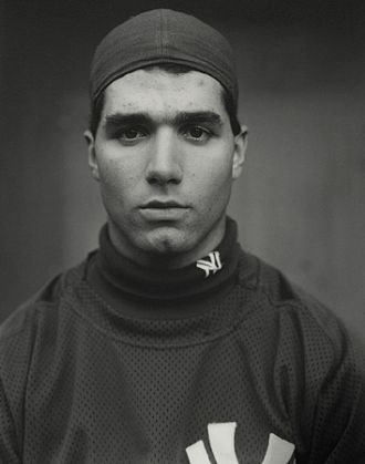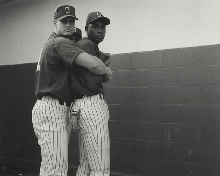 Some of the men are scarred. One has a swollen eye. In contrast to their scarred freshness is a portrait of LA Dodger Darryl Strawberry in 1993–the most recent of the photos and the only one taken of a major leaguer–the 19th photo in the show. He looks well-worn, with streaks of sweat and an indentation line above his brow, perhaps from all these years of wearing a baseball cap. The innocence is gone and the weight of high hopes has been replaced by the weight of responsibility.