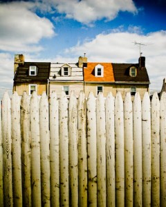 The focus of both Havens and Shimkonis’ work is on landscape and architecture. Shimkonis’ photographs, which are sharply rendered and saturated in color, explore the artist’s own neighborhood in Fishtown. Some of them, such as an image of sneakers looped over telephone wires against a cloudy blue sky, contrast the concept of personal or gang turf with the ideal of freedom. Others, including a depiction of two doors of different sizes and colors side-by-side, suggest a more tolerant coexistence.
