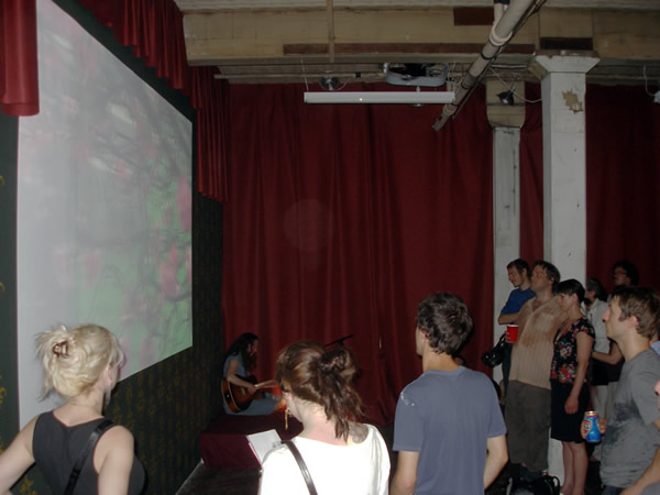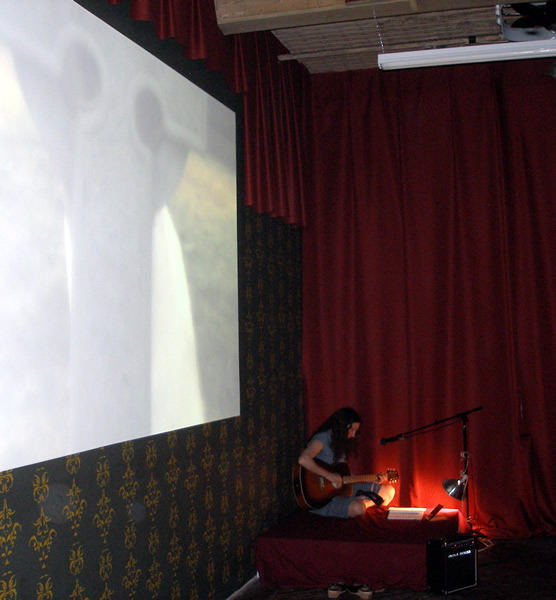 At the opening Rachel Mason performed the songs in sync with the films playing behind her. As much as I wanted to luxuriate in the music and mystery, I was put off by the extreme heat and to a lesser degree by the poor sound quality (so poor that they turned off one of only two fans in the room so she could be heard.) Granted most alternative spaces can’t afford much in the way of comforts, but it seemed as though the difficulties of the experience outweighed the draw for a lot of viewers. Mason has created something that could be poignant and captivating but it needs a different presentation—preferably one with chairs, speakers and air conditioning.