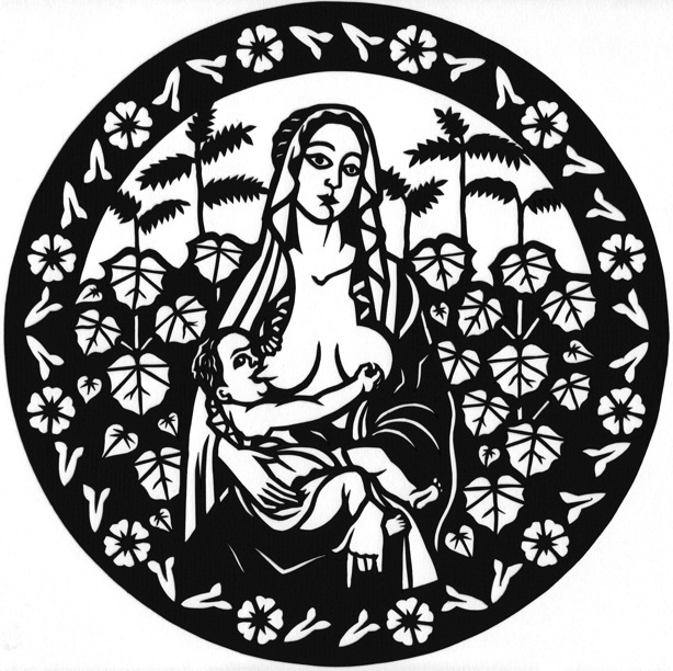 Into the fray in uber-Catholic South Philadelphia, our hero cut paper artist Joe Boruchow has a solution–wheatpasting over the invasive ads a holy image the removal of which would seem sacrilegious. Here’s the image: