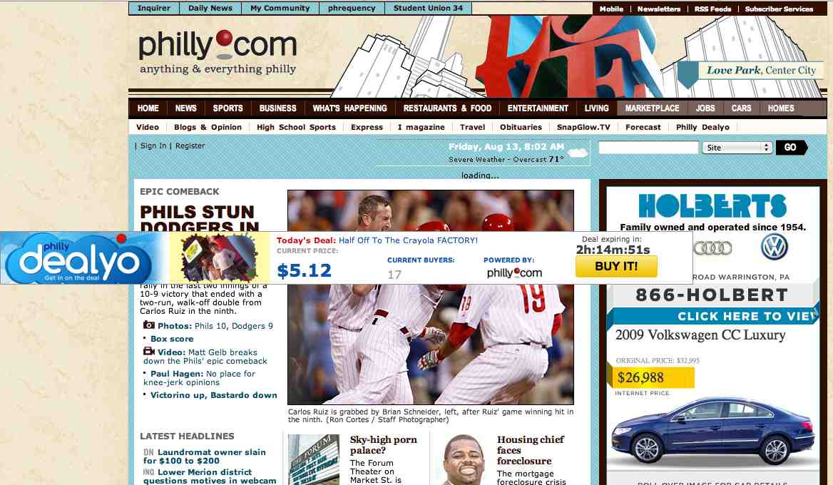 I’m sorry Philly.com but this is unacceptable–an ad that will not go away and that covers up content. This page always hurts the eye but this new move is an insult. Talk about putting up fences for your content!