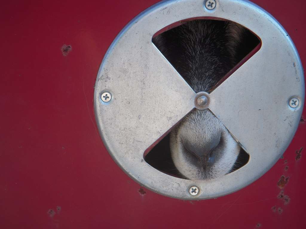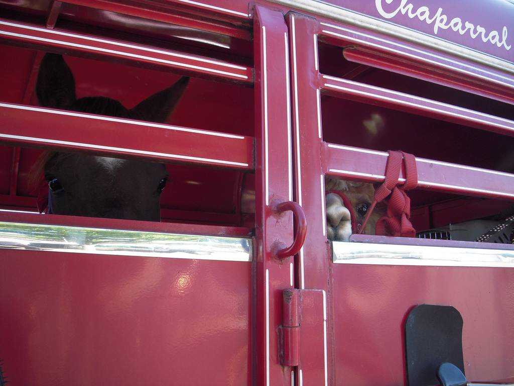 While out in Upper Merion, waiting for the library to open so I could go inside and work on the computer while I was waiting for my daughter to finish a class, I wandered around the municipal park behind the building. There was a small Saturday morning farmer’s market going on, and last Saturday, a community fair, including baton twirling high schoolers, a great marching band and, waiting in the wings, a bunch of animals for the kids to ride on. All I saw of the animals were a few parts peeking through the slats, highly worthy of a picture. I hope the little guys got out of their trailer shortly, because they were pretty edgy in that hot cramped space. There were 3 animals in the large space, two horses and what looked like a llama or alpaca. The mystery nose in the hourglass window is probably a goat.