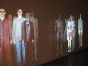 I also want to give props to Slought’s installation of Michael Snow’s loop video of sheep eating grass. It’s one of those watching-paint-dry experiences that the installation compensates for by installing it in four monitors placed around the gallery. So each time you pass a monitor, you see the progress of the sheep munching and looping across the field. This is entirely appropriate in that nothing much happens other than the bellwether leading the others, initiating the group’s circular path across the field. The influential Snow is about 25 years older than Oswald, but the pairing is terrific. Snow is about 80 but his recent work is fresh and lively, and Oswald is in his mid-50s. (Graham btw is just a few years older than Oswald).