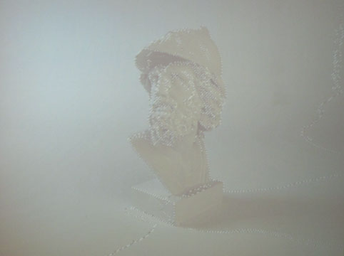 Jordan Tate’s untitled projection of an animated Gif is another strong piece in this exhibition. It displays a photograph of a marble sculpture as if it were being viewed in Photoshop after the magic wand tool had selected an area of the picture. According to the artist statement, Tate wants us to see the work not as an object but as a “representation of a reproduced reality.” The work is unique for the way it shows an image that, because of the animated selection lines, would be considered to be in the process of revision. It brings up questions surrounding what constitutes a photo, and what boundaries exist between photography and animation, and indeed photography and the documentation of real world objects.