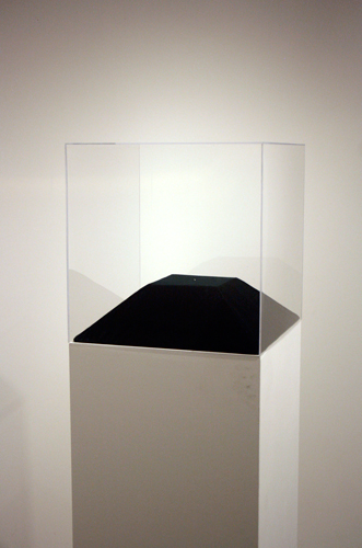 Humor sits on the exhibition like a welcome guest. Looking around, my mind filled up with futurist ideas from the 1960s, a time when aluminum was the next new thing. In Dave Murray’s “85% of the Art I Made Turned Into A Diamond”, the artist used the incinerated remains of 24 attempted projects to make a 0.29 carat diamond. Displayed on a huge pedestal, the extremely minute diamond is a pretty effective piece. However, I think it is the title that makes this work, pointing the viewer’s thoughts towards ideas about the artist’s journey and the importance of failure, happy accidents and chance, and away from the “precious” object itself. The little object needed more dramatic lighting to enhance the artist’s ironic intent.