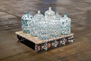 It’s great to see Hawkins, James Castle, Horace Pippin, Howard Finster and others represented in this mix. And the price list for the show (from modest 4-figure prices to astounding 6-figures for some works) demonstrates how the art world and the art market have embraced these once-marginal figures and now consider them essential to the history of art. It’s also great to see contemporary street artist Phil Frost in this mix. Frost’s installation “Open Heart Ascension” uses pattern painting to anoint and beautify a phalanx of found objects (nine glass water jugs and a hand-made pallet on which they sit). The piece complements the highly patterned native American works in the show and it relates well to James Castle’s decorative drawings on found scraps of paper and cardboard.