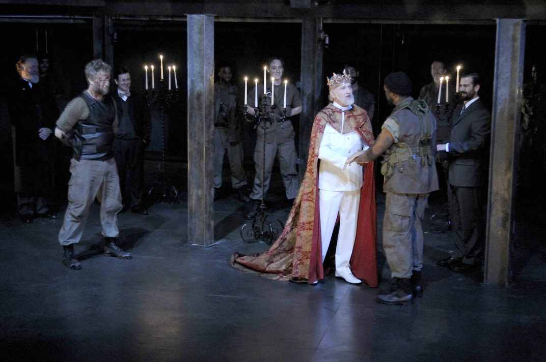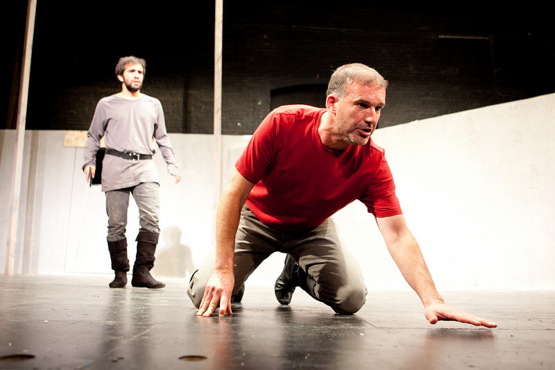 Shakespeare’s Henry V, with an all-male cast in an equally bare-staged, in the round production by Quintessence Theatre Group, now in its inaugural season at Germantown’s Sedgwick Theater.