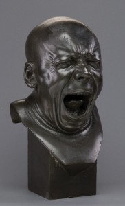 The Character Heads strike me not as realistic representations of the way a face changes with emotion, but as attempts to represent the way emotions, and those actions expressed through the face, feel from within. This is particularly clear with The Yawner; a yawn has both duration and occasional pauses, and when yawning one is very conscious of muscles tensing, then releasing. Messerschmidt captures that muscular self-consciousness. Some scholars have discussed the heads in terms of prior studies of facial expressions, such as Le Brun’s famous treatise, and to late 18th century interest in physiognomy; but Le Brun established an alphabet of standardized expressions that could be used by his followers, and Lavater and others were interested in the typical. These bear no relation to Messerschmidt’s project.